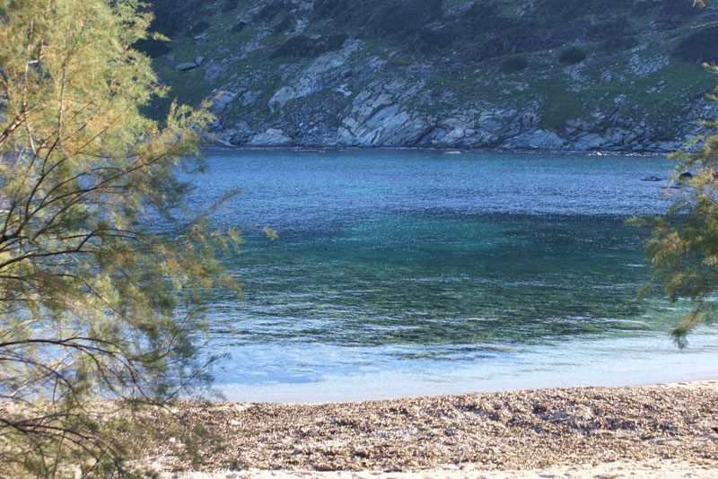 Έχει λευκό βότσαλο και πεντακάθαρα, διάφανα νερά, όπως και όλες όσες βρέχονται από τη θάλασσα του Αιγαίου.